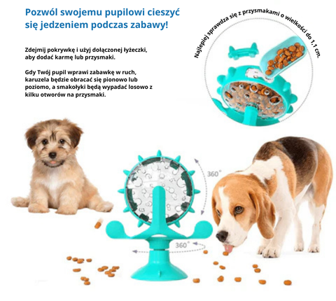 Każde obrócenie zabawki sprawia, że przysmaki wypadają w nieprzewidywalny sposób, co dodaje zabawie emocji i radości!