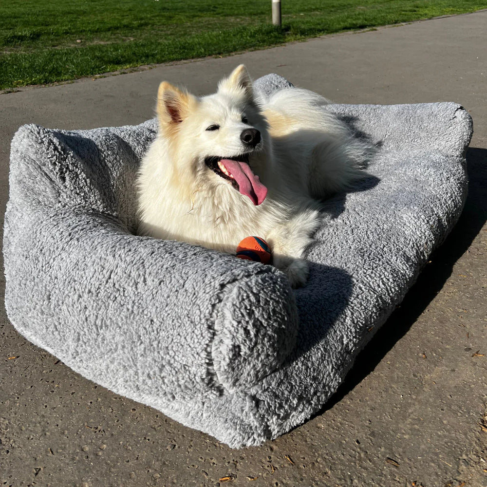 Nasza sofa stawia na komfort i bezpieczeństwo dzięki ultra-wygodnemu materiałowi przypominającemu futro, który koi nerwy psa, sprzyjając szybszemu relaksowi.