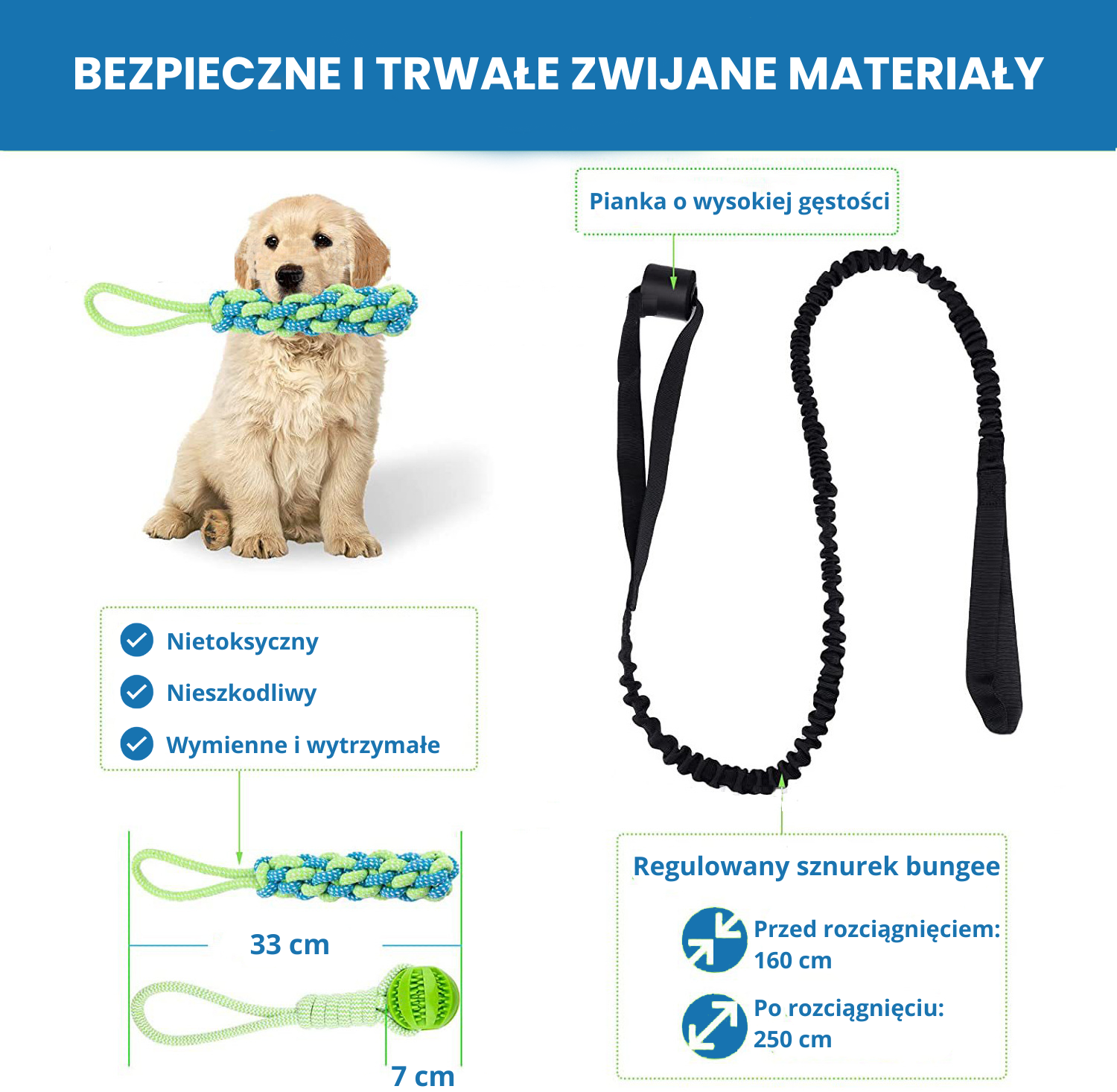 Wspomaga aktywność fizyczną: Zachęca do interaktywnej zabawy, która pomaga utrzymać psa aktywnym i zdrowym. Funkcja przeciągania stymuluje mięśnie i zwiększa siłę.
