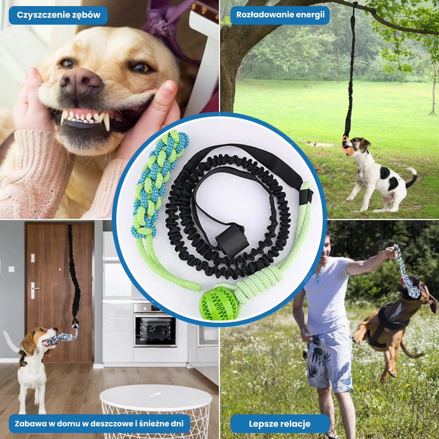 Przedstawiamy naszą innowacyjną zabawkę do przeciągania z liną, którą można łatwo przymocować do drzwi lub drzewa, zapewniając psu niekończącą się zabawę i ćwiczenia.